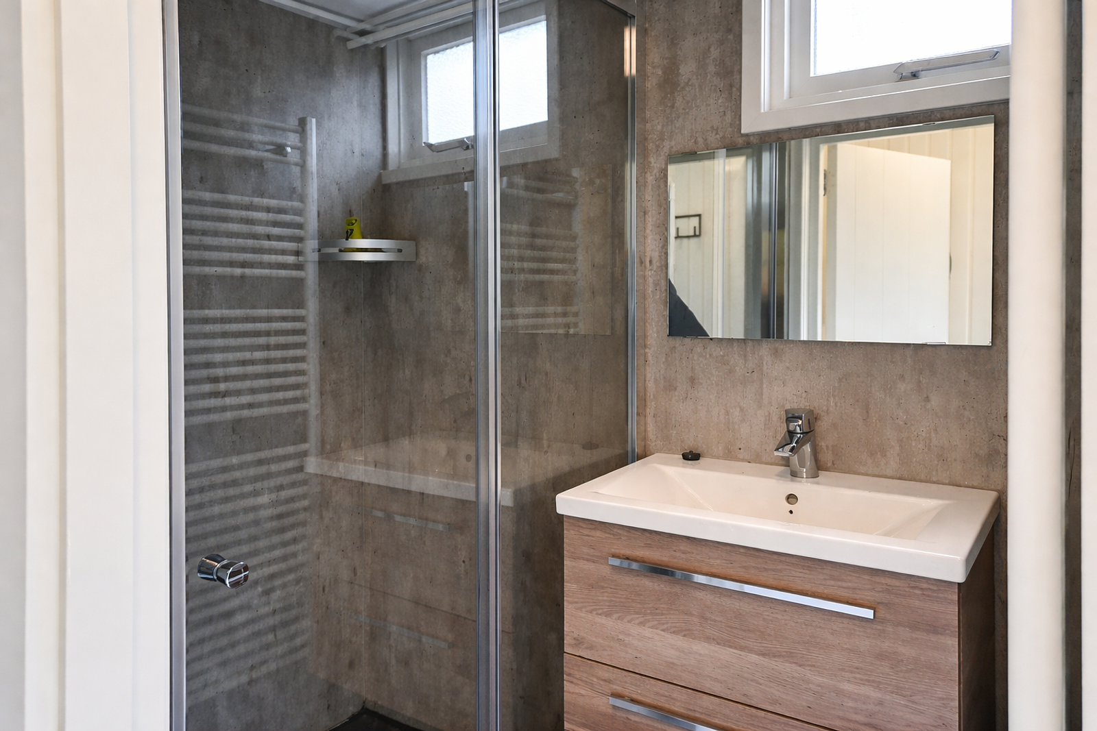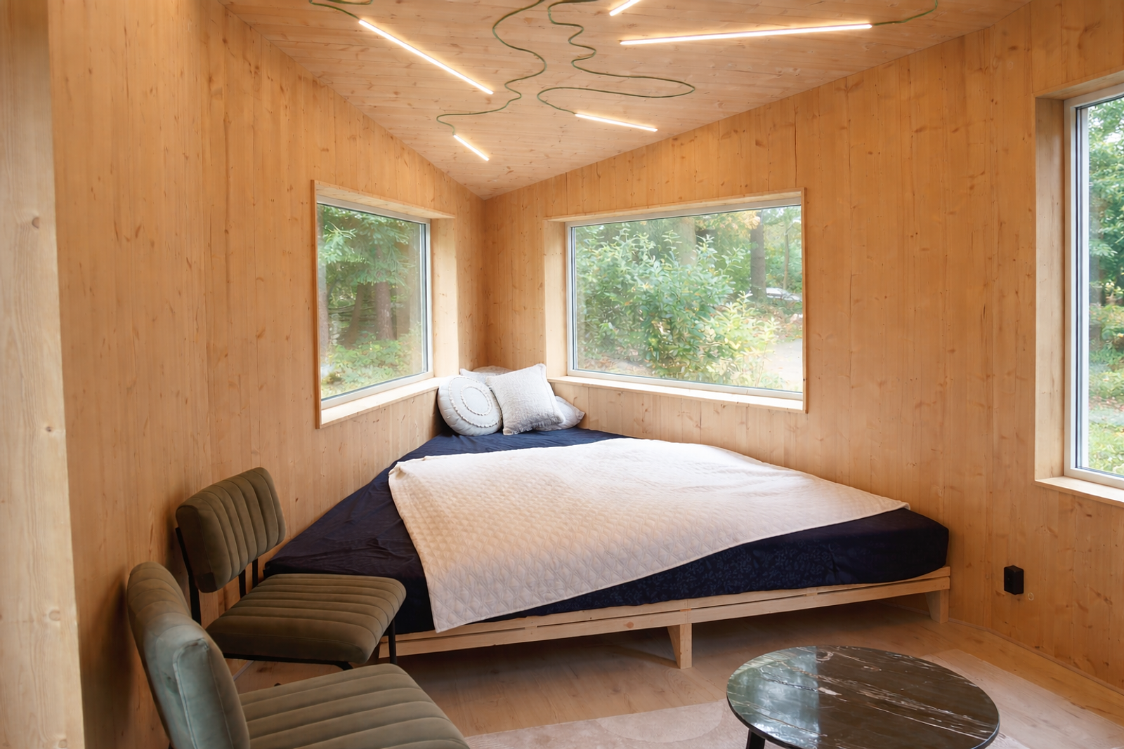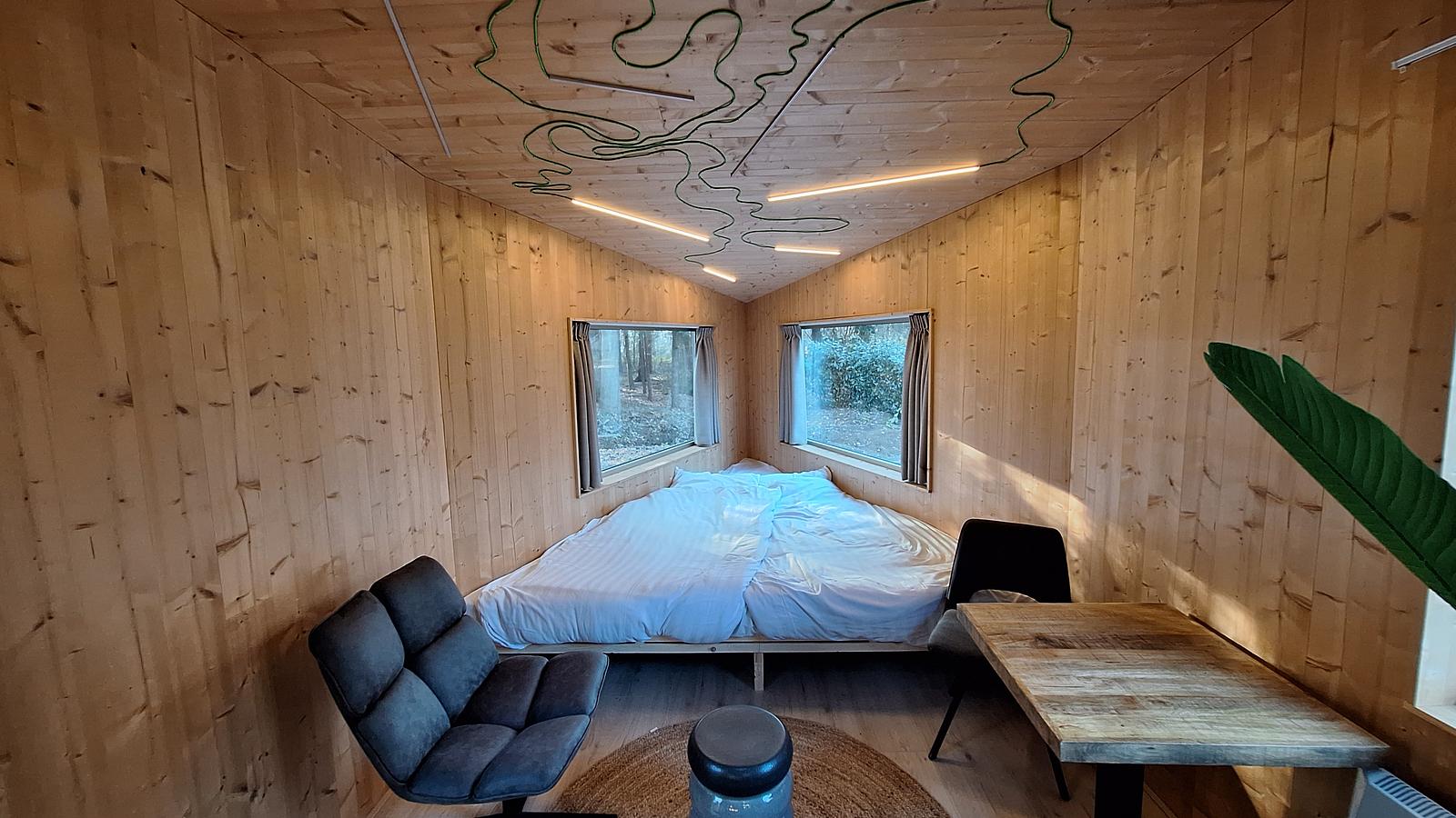 - Geen drempels in deze vrijstaande en gelijkvloerse lodge
